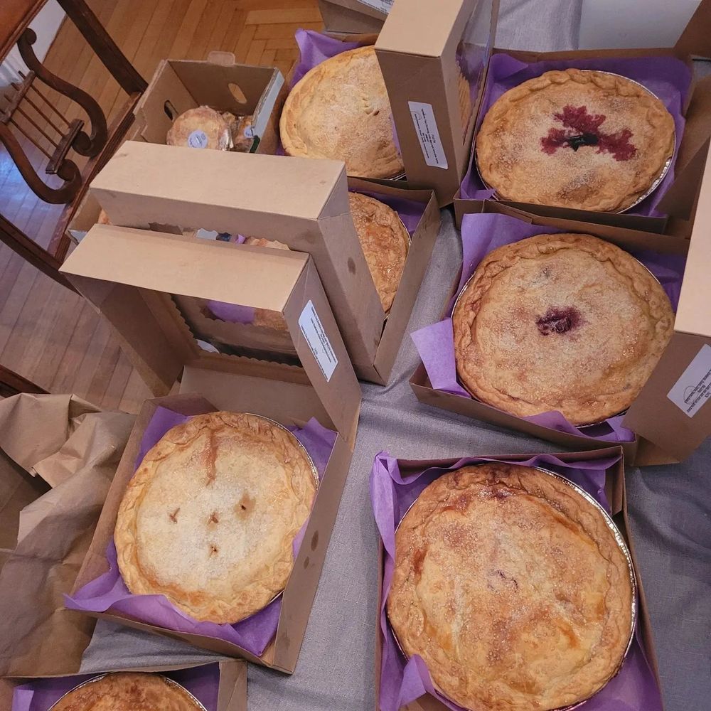 Apple, Apple Cranberry Crumb, Lemon,Strawberry Rhubarb(seasonal) , Pumpkin,(seasonal) Peach, Blueberry, Pear w/salted Caramel, Chocolate Cream, Coconut Cream, Banana Cream, Lemon Cream, KeyLime , Pecan, Chocolate Pecan